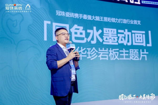 發(fā)布會現(xiàn)場,由冠珠瓷磚與冠珠520表白官、質(zhì)感設(shè)計師王昱珩攜手共創(chuàng)、行業(yè)首支「國色水墨動畫」產(chǎn)品主題片同步驚艷首發(fā),對冠珠華珍巖板新品的國色芳華、文化厚度予以生動詮釋。